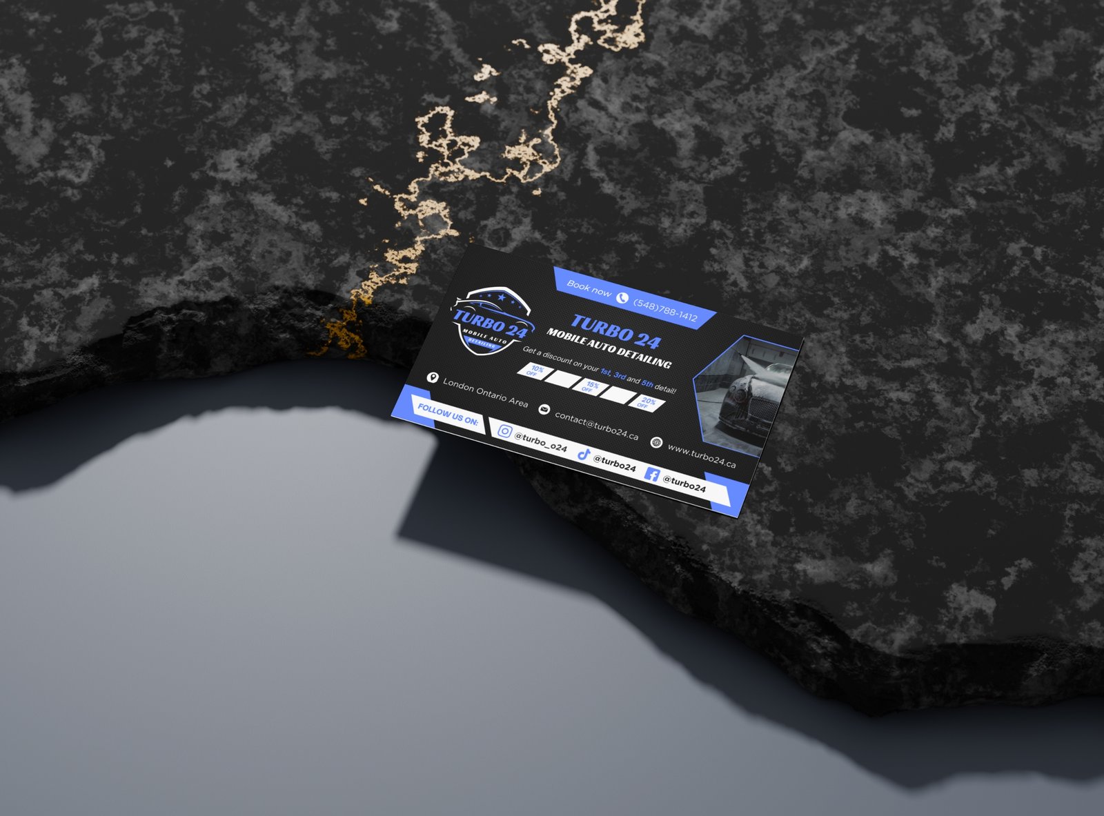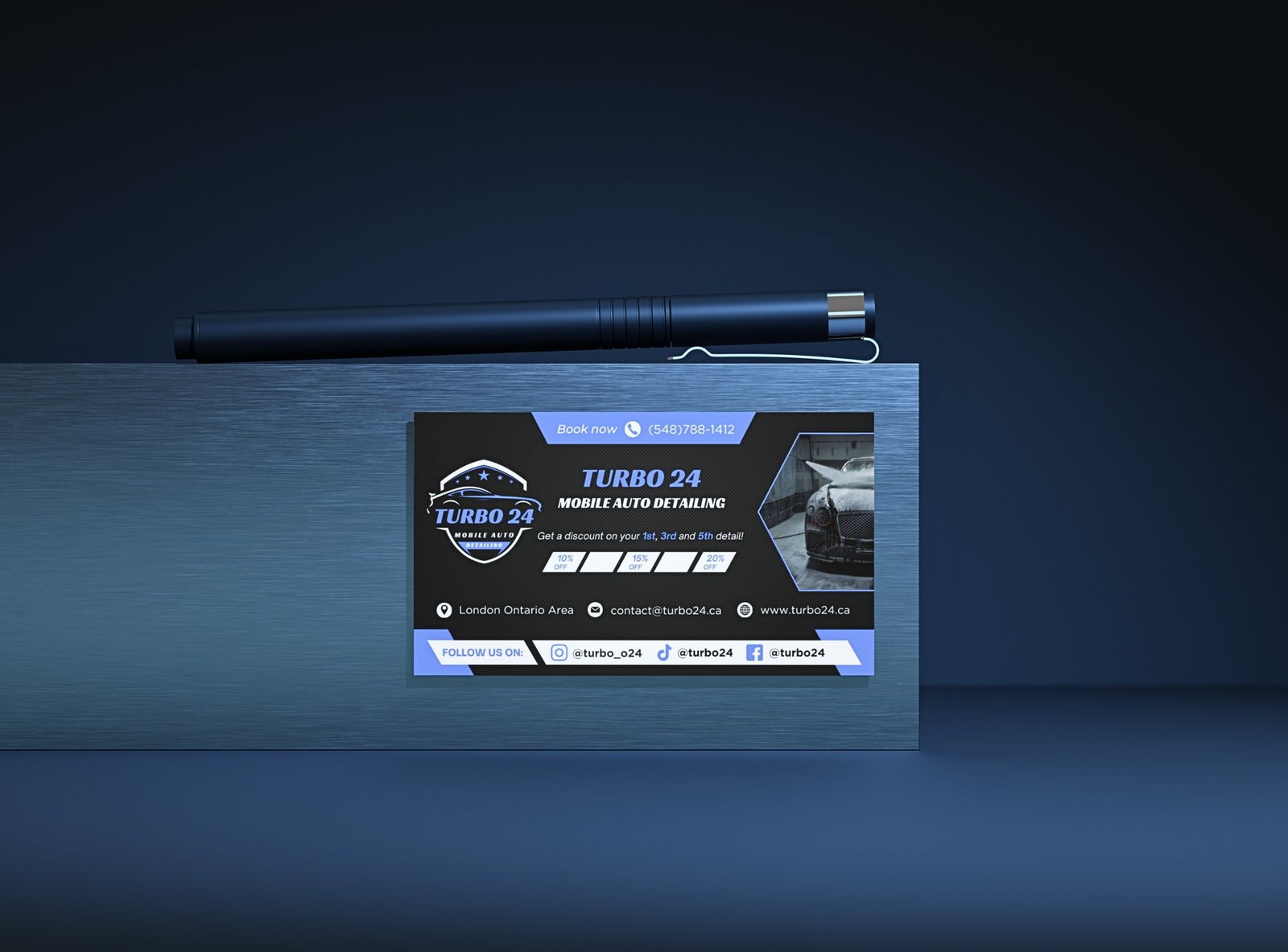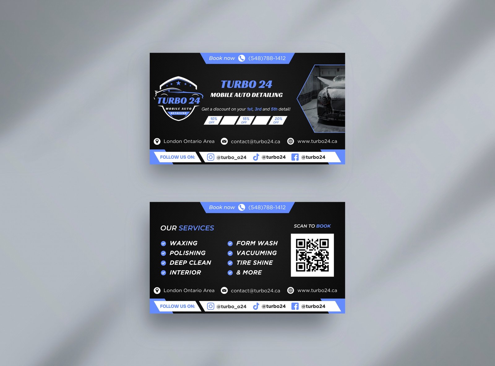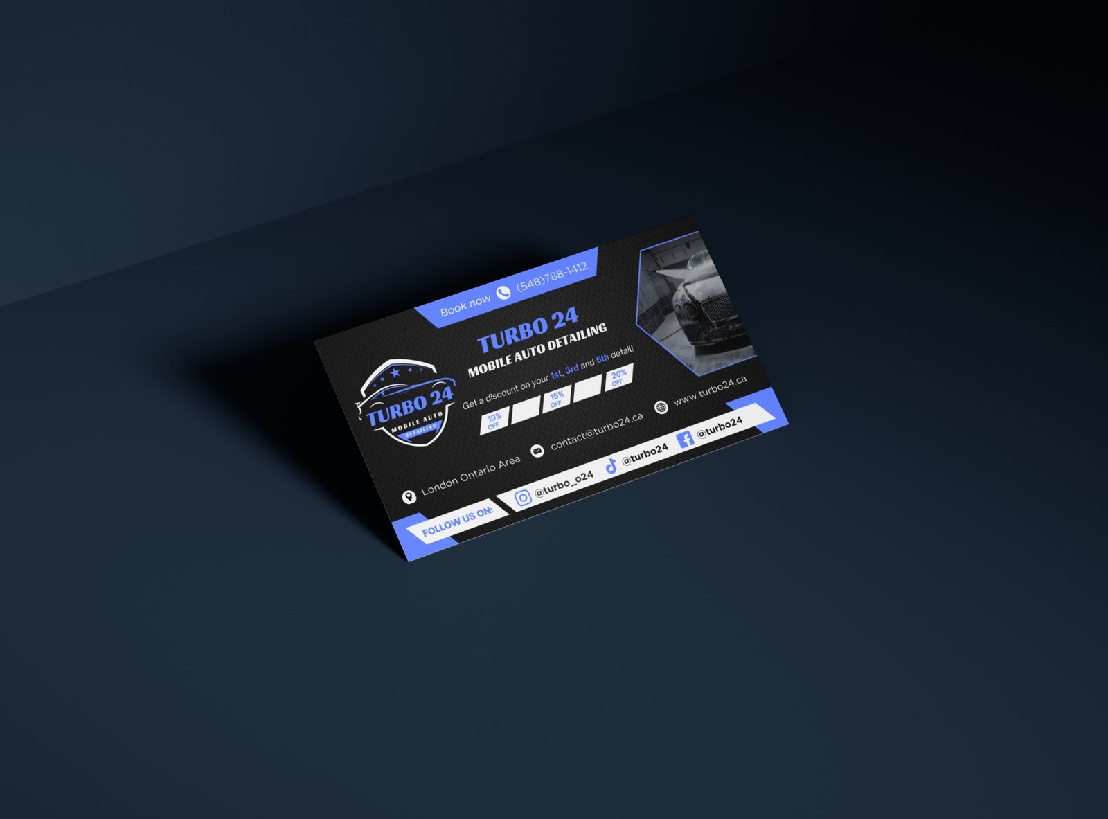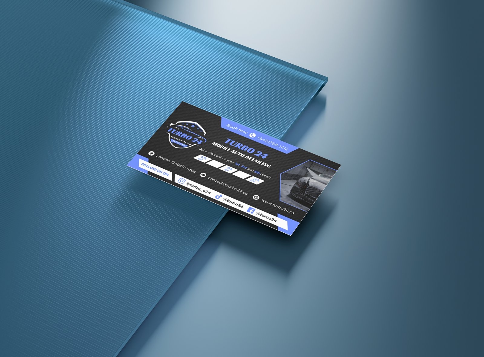 Delivered a complete brand and digital identity package for Turbo 24, a mobile auto detailing business. The project included a custom website, a professional logo, a branding system, business cards, and a promotional flyer, all aligned to reflect speed, reliability, and premium service.