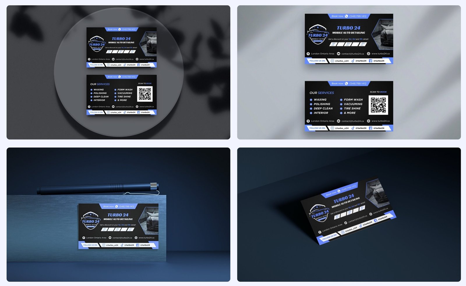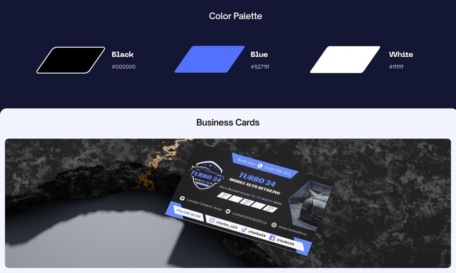 Delivered a complete brand and digital identity package for Turbo 24, a mobile auto detailing business. The project included a custom website, a professional logo, a branding system, business cards, and a promotional flyer, all aligned to reflect speed, reliability, and premium service.