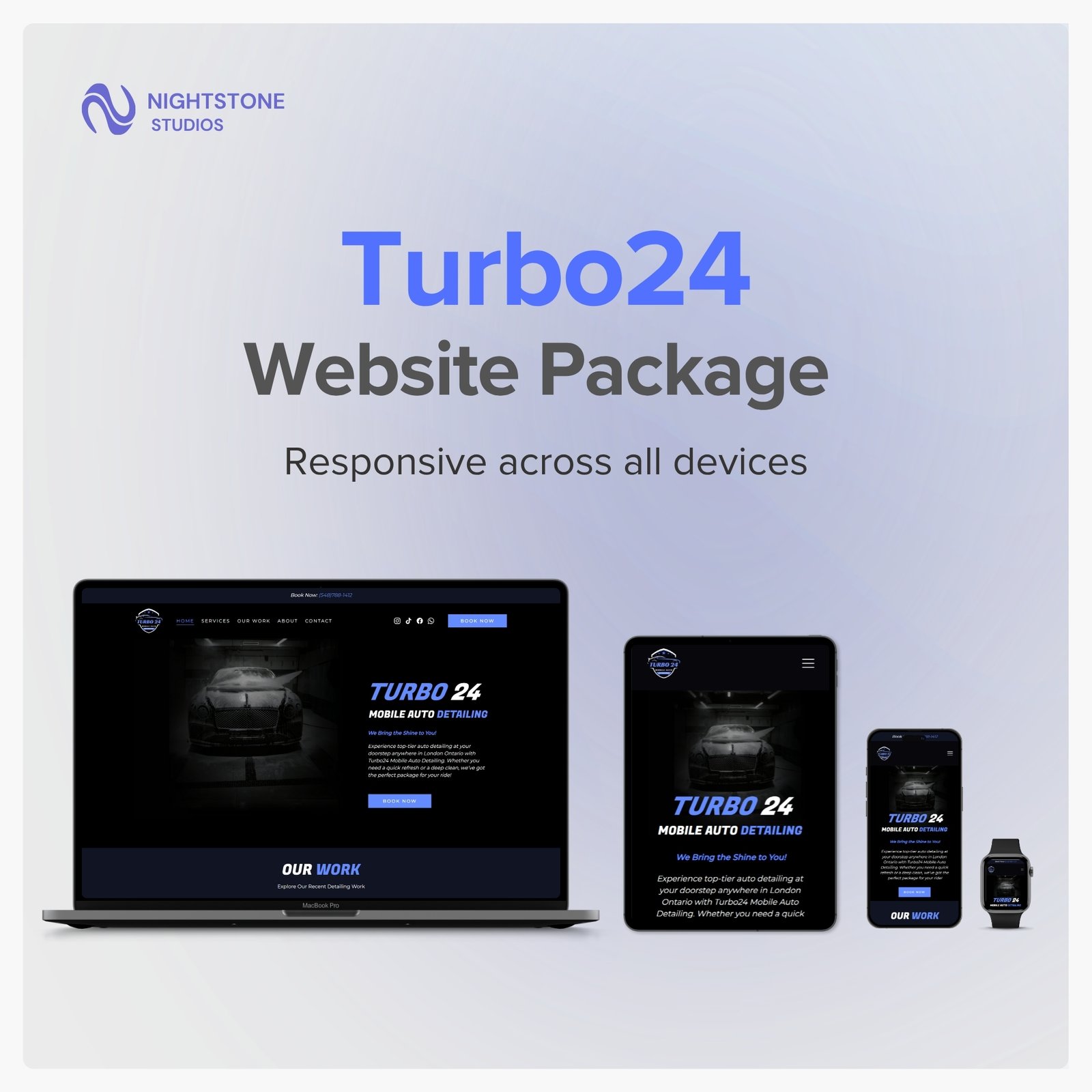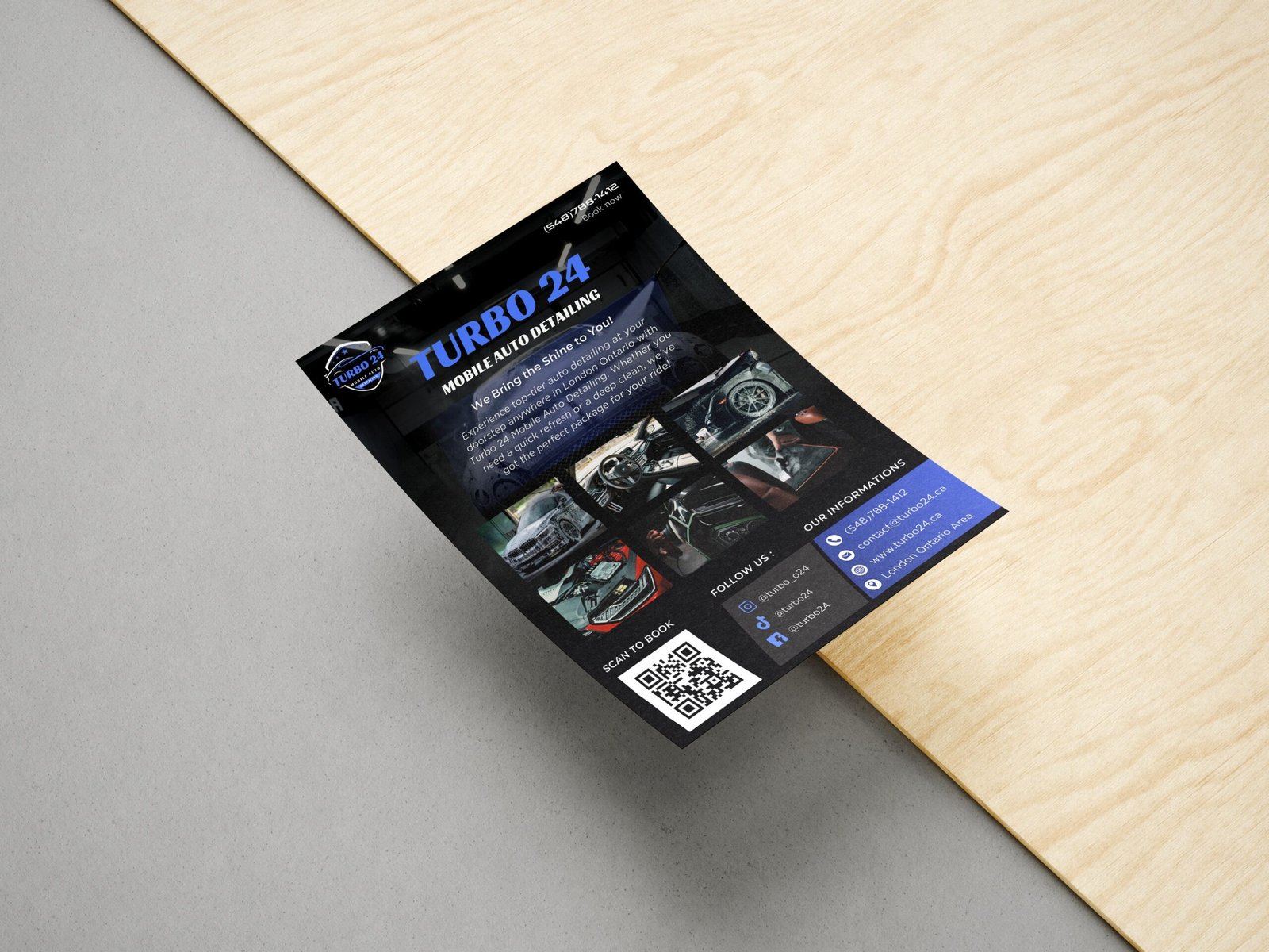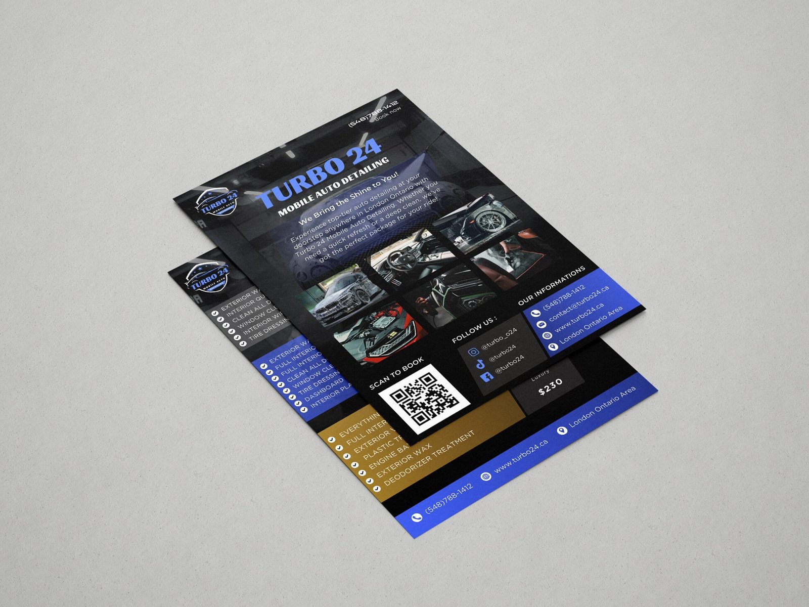 Delivered a complete brand and digital identity package for Turbo 24, a mobile auto detailing business. The project included a custom website, a professional logo, a branding system, business cards, and a promotional flyer, all aligned to reflect speed, reliability, and premium service.